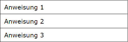 Anweisungen werden durch Rechtecke dargestellt, eine Sequenz (d.h. eine Abfolge mehrerer Anweisungen) durch übereinandergestapelte Rechtecke.