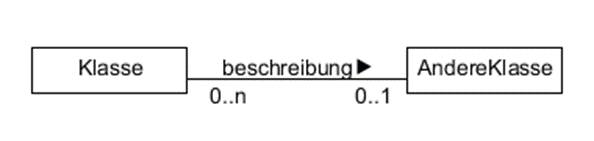 Der Pfeil gibt die Richtung der in der Beschreibung angegebenen Beziehung an (z.B. zur Klarstellung, dass der Lehrer den Schüler unterrichtet und nicht der Schüler den Lehrer).