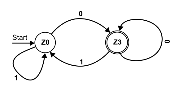 Erstellen Sie einen deterministischen endlichen Automaten mit dem Alphabet A = {0, 1}, der Binärzahlen verarbeitet und genau die geraden Binärzahlen akzeptiert.