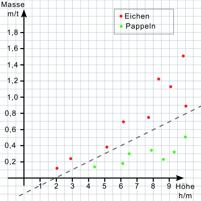 Beispiel 1: Erkennen der Baumart anhand von Höhe und Masse