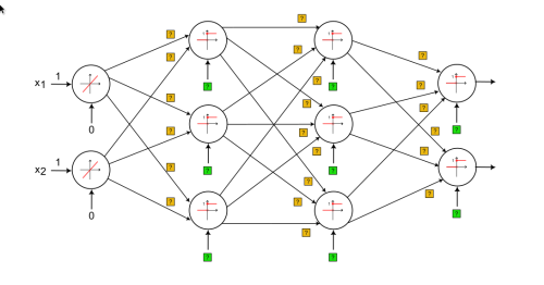 Die Ermittlung der Gewichte und Schwellenwerte mithilfe von Backpropagation folgt immer folgendem groben Ablaufplan: