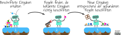 - datenbasierten Systemen (bei denen die KI keine fest vorgegebenen Entscheidungsregeln hat, sondern diese auf Grundlage von Daten selbst findet, also gewissermaßen "lernt").